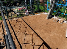 Затем мы засыпали место захоронения грунтом и пескобетонной смесью, тем самым приподняв участок. Все работы были произведены точно по уровню, так что возможность появления холмов или впадин была исключена.