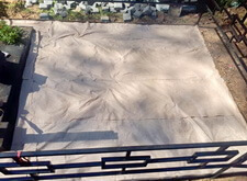 Затем мы сварили по периметру могилы борта из металлических полос, которые и будут являться границей брусчатки. Земля была застелена геотекстилем, который и предотвратит прорастание травы сквозь швы между плитками.